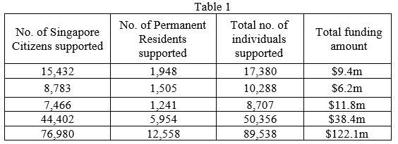 Since 2017, FSDF has disbursed S$188 million of course fee subsidies to about 176,000 individuals, of whom 153,000 (or 87%) were Singapore Citizens. Grant funding for individuals increased significantly in the past two years1, as more individuals enrolled themselves in IBF accredited training programmes, notably in areas like cloud computing, data interpretation, and compliance. The annual statistics relating to schemes providing course fee subsidies are provided in the table below. All claims received were approved.